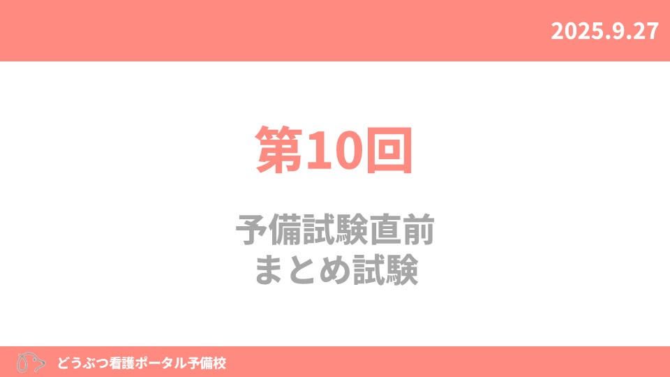 この度はどうぶつかんごポータル予備校へお申し込み頂きありがとうございます。愛玩動物看護師国家試験合格を目指して一緒に頑張りましょう。国家試験までのカリキュラムを進めていく中で出題範囲の基本的な知識を増やしていってどんな問題が出ても「何とかなる!」を目指して問題演習を続けていきます。詳しくはこちらをご覧ください。